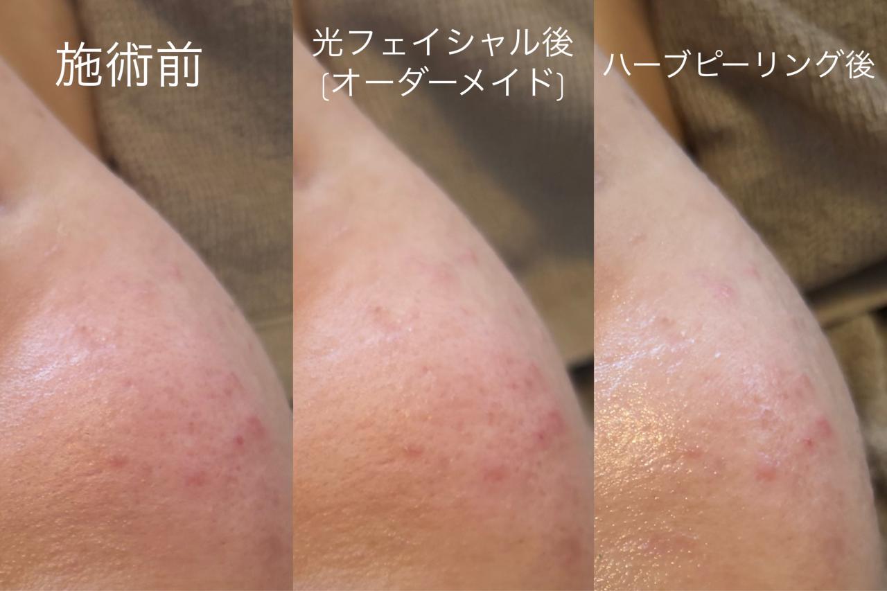 施術前から光フェイシャル後は、赤みとニキビ鎮静